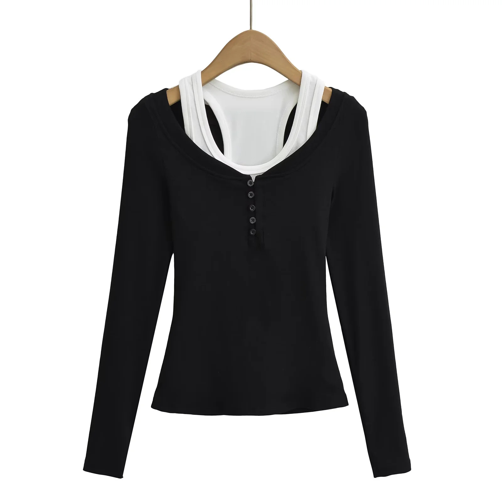 Tank top+V-neck button top two-piece set